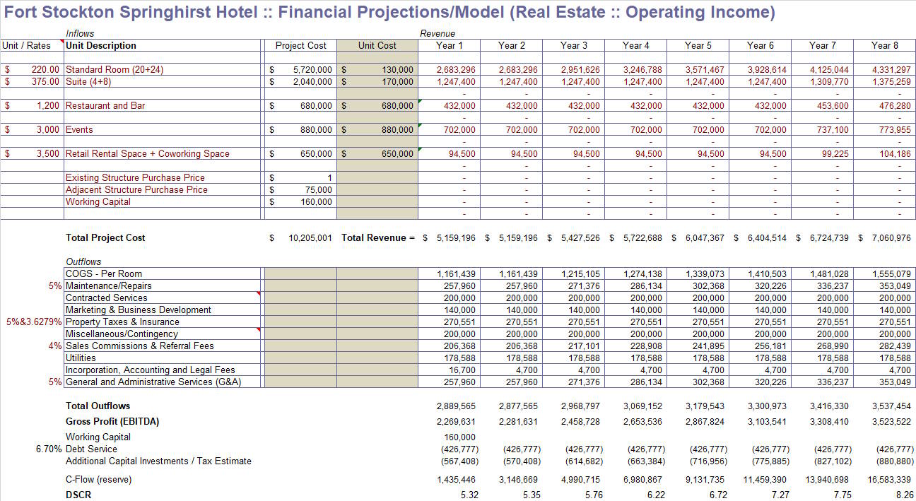 Below please find our project financial proforma including performance projections for an 8 year horizon (click the proforma to expand it).